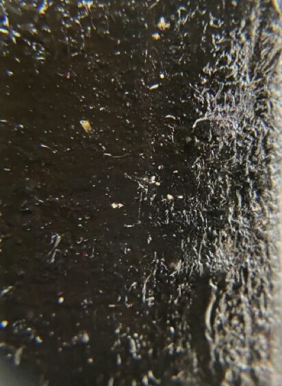 Détail des écailles en soulèvement d'une peinture contemporaine avant traitement de restauration. les écailles en tuiles seront aplatis et recollé grâce a l'intervention de l'Atelier CROMA situé entre Annecy et Genève.