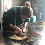Nettoyage d'une œuvre mixed media par l'atelier CROMA situé entre Annecy et Genève. nettoyage avec un cotton tige / battante ouaté de la surface acrylique peinte sur papier mâché.